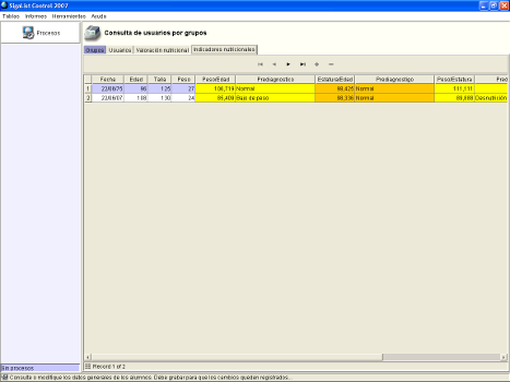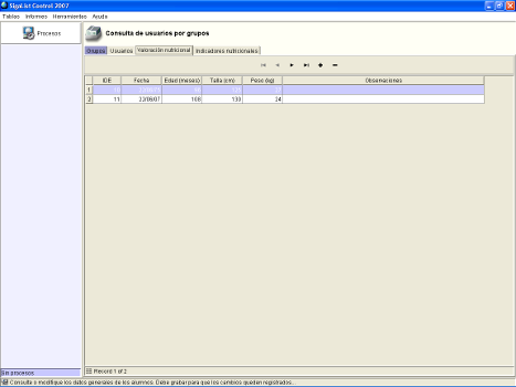 Una vez registrados los valores nutricionales del alumno por fecha, el